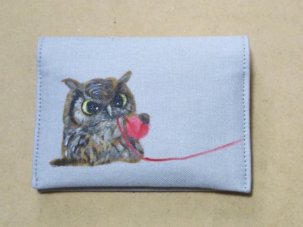 手描きカードホルダー:文鳥 ぶどうからワイン〔CH002-0752〕